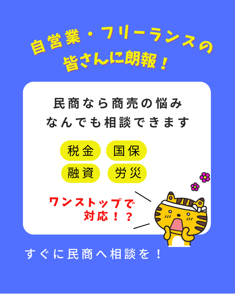 民商では、商売に関わることなら、なんでもワンストップで相談できます。 昨年秋に設備取付業を独立開業したTさんは、社会保険から国民健康保険に切り替わったことで、高すぎる保険料に困っていました。また、確定申告が必要なことは知っていましたが、どう...